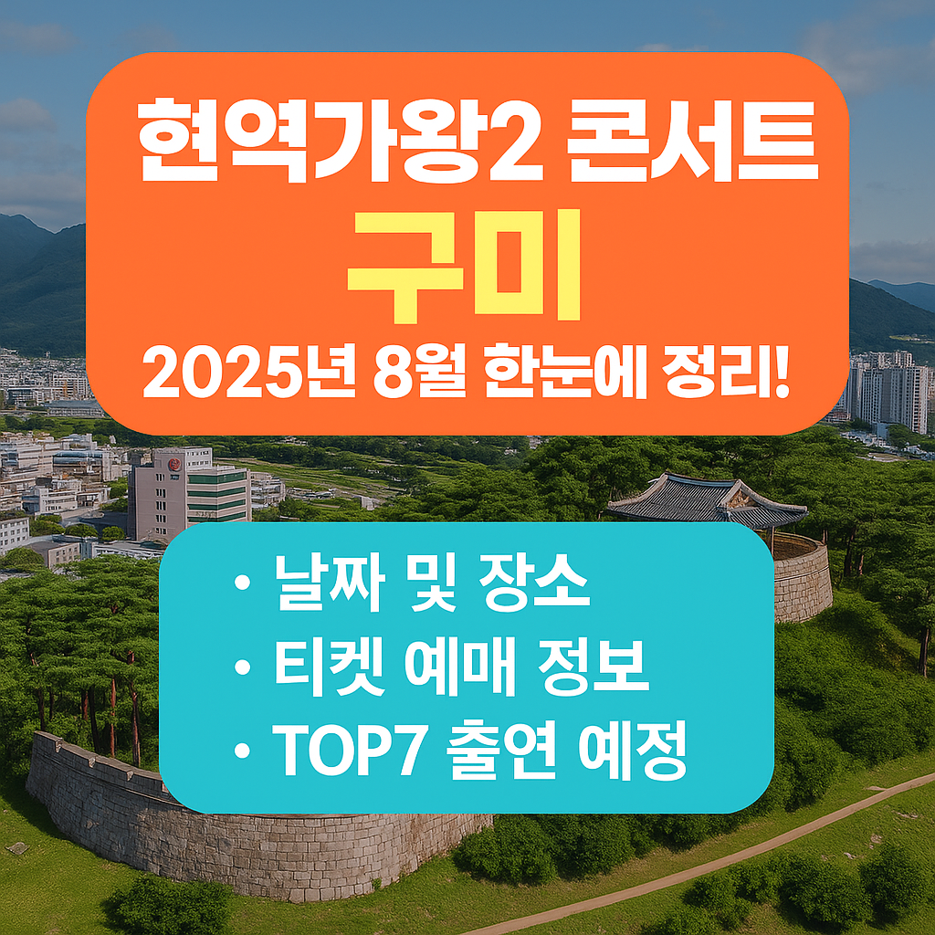 트롯 팬 여러분, 뜨거운 여름! 현역가왕2 TOP7과 함께하는 구미와 수원 공연 소식 궁금하시죠? 눈 깜짝할 사이 매진된 여수·청주 공연 이후, 이번엔 구미(8/30)와 수원(8/23)에서 다시 만날 기회가 찾아왔어요. 날짜, 장소, 좌석 가격, 티켓링크까지 한 번에 정리해드립니다!
